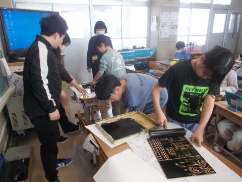図工では「建物と花」の版画です。友だちと協力しながら刷りました。社会では,まとめのテストをしました。国語では「もう一つの物語」を書いています。パソコンで下地となる物語を聞いていました。