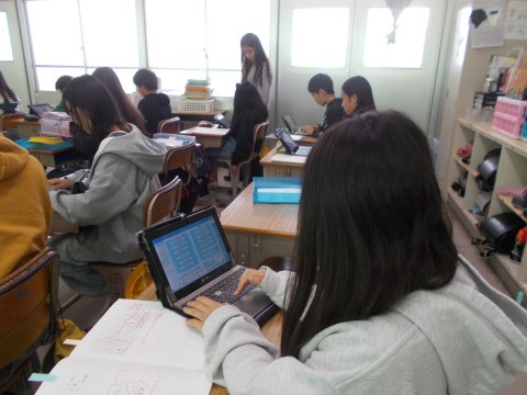 外国語では,「おすすめする国」の情報を集めていました。「食べ物」や「建物」「文化」などを英語で表現します。タイピングの練習もしています。