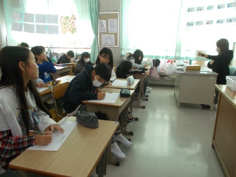 場合の数のテストをしています。テスト前には休み時間にプリントで復習をしたり,テスト中は見直しを何回もしたりしながら,取り組んでいました。