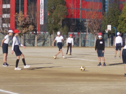 準備運動を兼ねて,パス練習をしていました。試合では,友だちのところへ的確にボールを出せるようにしたいですね!