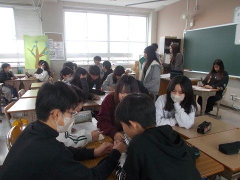 宮園小学校6年生のみなさんと一緒に,にんげん学習交流会を行いました。活発に発言する姿があり,たくさんの先生方が感心しておられました。中学校での活動が楽しみです。