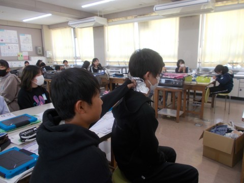算数では,教え合い活動をして復習をしています。社会では「国際社会と日本のつながり」を学習しています。家庭科では,「暖かく過ごす,住まいの工夫」をしり,実生活に役立てていきます。