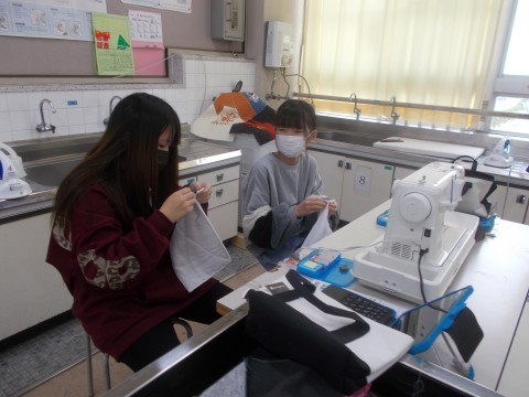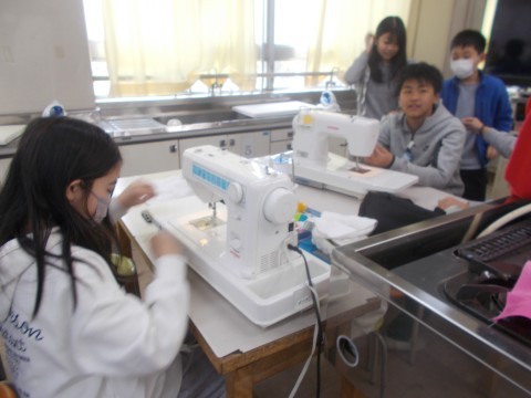 雑巾を作っています。模様を付けたり,縫い糸の色を変えたり工夫がされてありました。