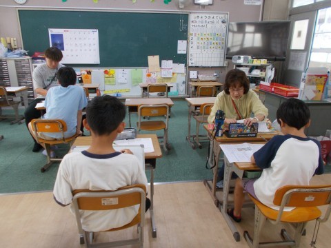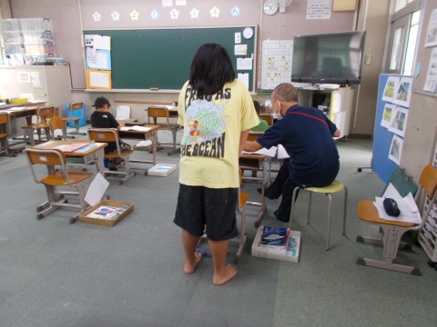 友だちや先生の夏休みにしたことを質問し、カードがビンゴするようにかわるがわるたくさんの人に聞いてみました。先生たちも、夏休みを楽しんだようです。