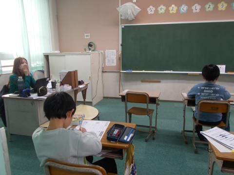 間違った漢字のお直しをしたり,算数の図形についてプリントをしたりしていました。