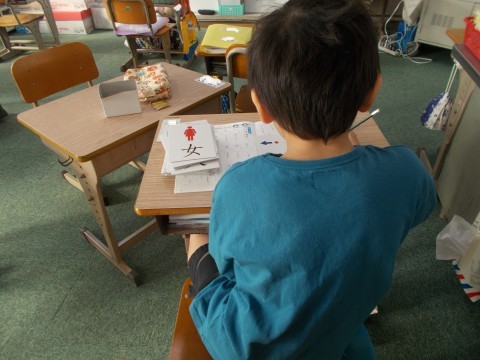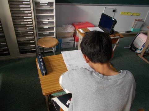 間違った漢字のお直しをしたり,算数の図形についてプリントをしたりしていました。