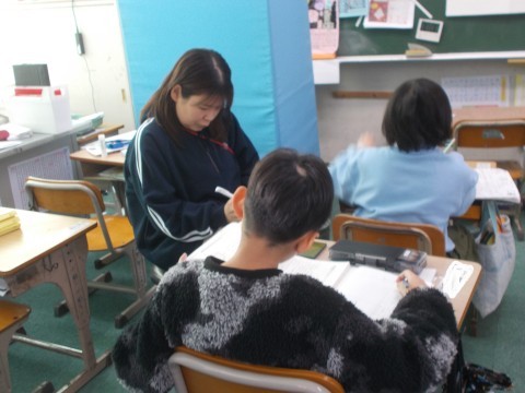 算数では,分数の大きさについて学んでいました。漢字の覚え方も個人個人,違う方法を実践していました。