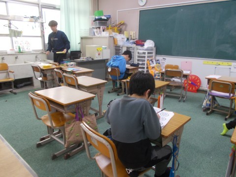 国語科では,先生が作ったワークシートを使って,教科書の本文を繰り返し読みながら,答えを記入していきました。