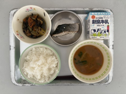 給食のさばのしょうが煮は、大きな釜で煮込んで