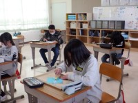 書写シートをしました。筆順に気を付けて、字形を整えながら書きました。