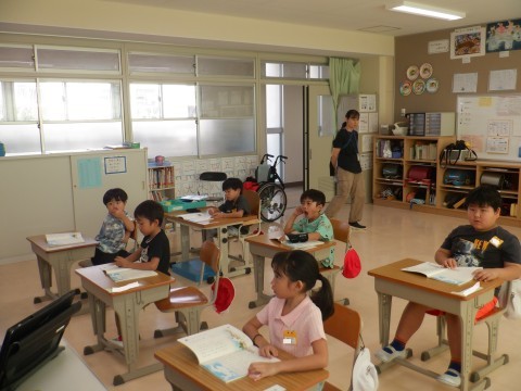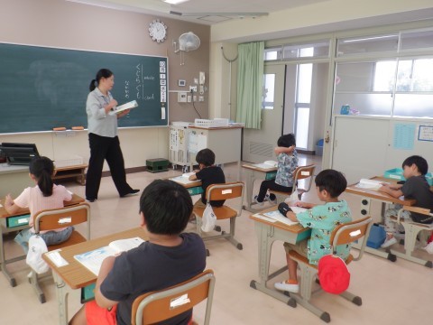 「くじらぐも」を読みました。先生の後に続けて,しっかり声を出しました。