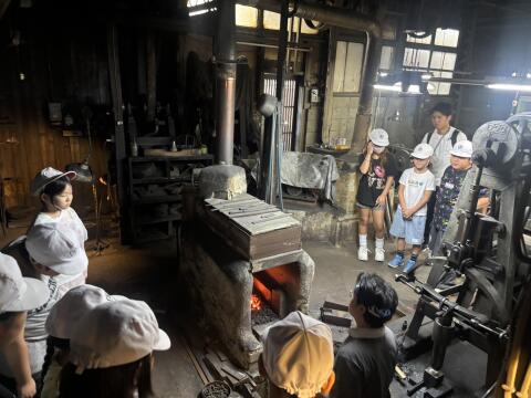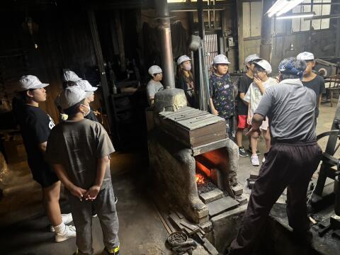鍛錬所に到着しました。刃物づくりの工程を教えていただきました。