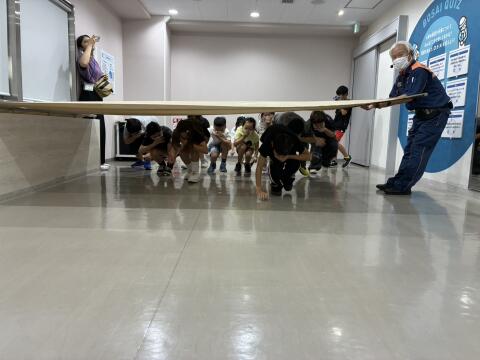 堺市総合防災センターでは、地震体験や消火訓練、そして煙や暗闇時の避難方法などを教えていただきました。