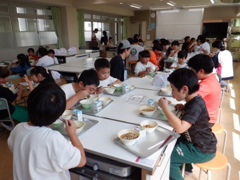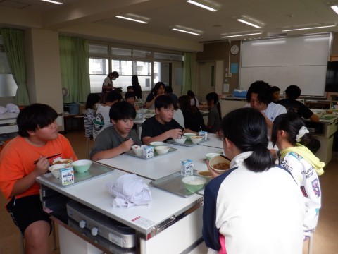 今日の献立は,ごはん,牛乳,豚汁,揚げじゃがのそぼろかけでした。たくさん食べて,しっかり体を動かしましょう!