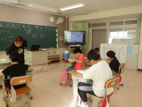 2けた×1けたのかけ算の筆算の計算の仕方について考えました。黒板の文字をしっかりノートに写し,考えていました。