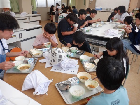 今日の給食は,ごはん,野菜たっぷり味噌汁,焼きサバ,まぜたら秋の風味ごはん,牛乳でした。秋の味覚を楽しめましたね。