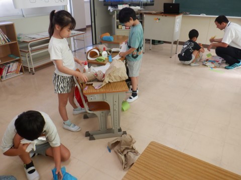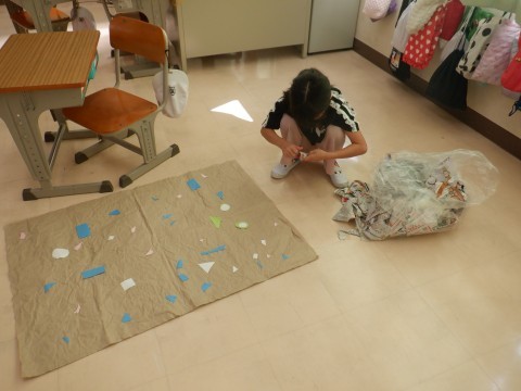「ギュッとしたいわたしのお友だち」の製作の続きをしました。あともう少しでお友だちが完成しそうですね。画用紙で飾りをつけたり,形を工夫したりしていました。