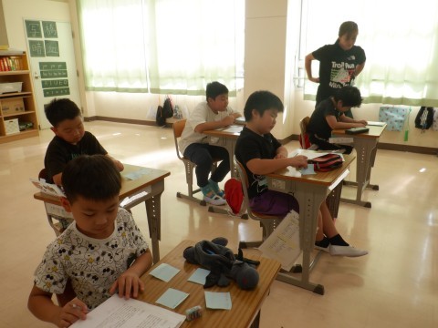 スーパーマーケットで見つけたことを付箋に書き出しました。いろいろな工夫が見つかりましたね。
