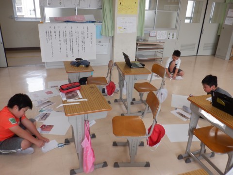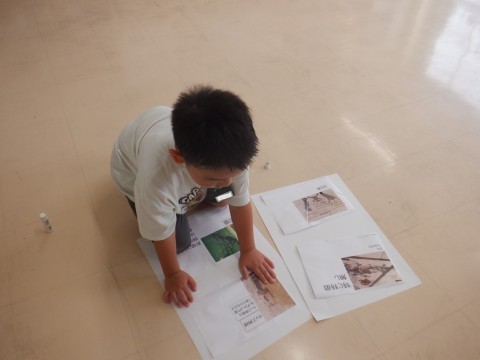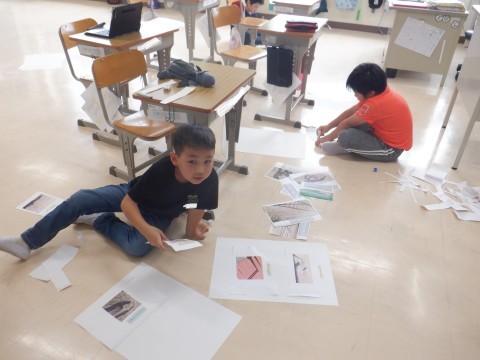 おもしろい影の形を見つけたり,作ったりして「何に見えるかな?」と考え,写真に撮りました。発表ノートにまとめました。
