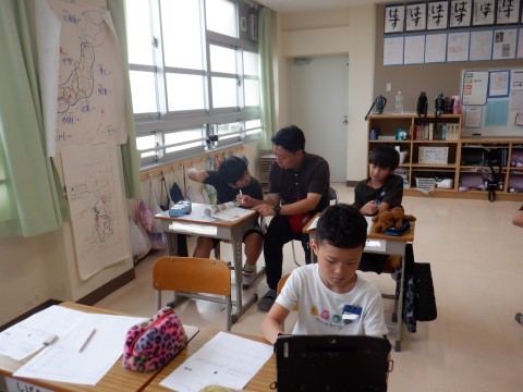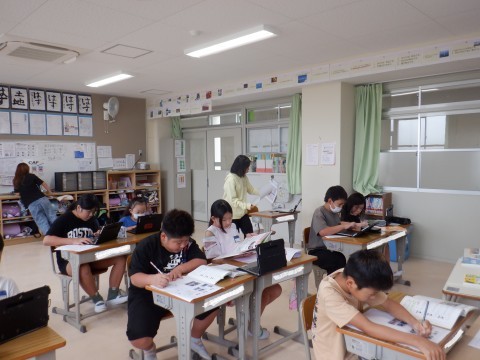 防災について伝えたいことを新聞としてまとめました。しっかり集中して取組んでいました。