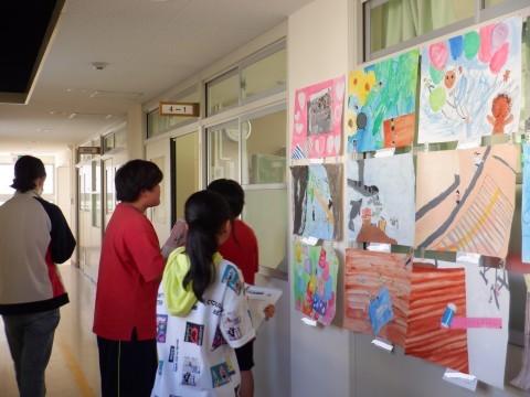 校内図画展がありました。他の学年の友だちの作品のいいところをしっかり見つけて,鑑賞していました。「おもしろいな」と思う表現が見つかりましたね。