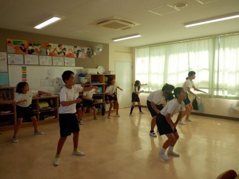 体育参観に向けて,ダンスを覚えました。お手本を見て,一生懸命動きを確認していました。