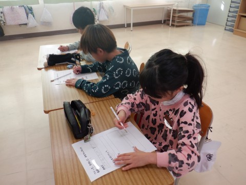 輪ゴムを使って遊んでみました。どんな遊びができそうなのか,ワークシートに書きました。