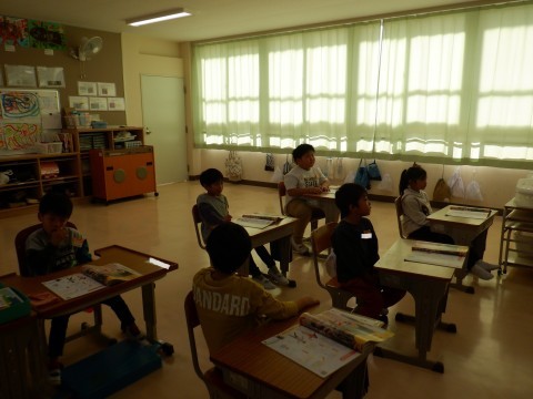 「秋といえば・・・」と季節のものを考えました。イチョウや紅葉,祭りなど,いろいろな意見が出ていました。