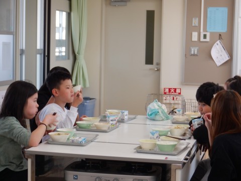 給食の様子 公開日 2025/10/23 更新日 2025/10/23 学校紹介 今日の給食は,ご飯,牛乳,チャンポン麺,小松菜サラダ,しょうゆドレッシングでした。昨日からチャンポン麺を楽しみにしている人がいました。おいしかったですね。