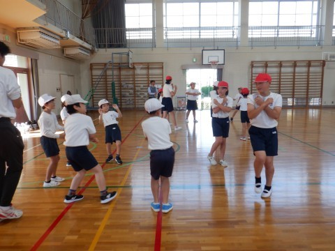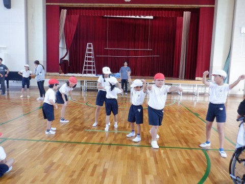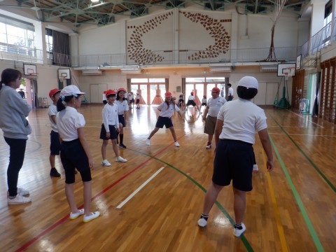 5・6年生が先生になって,それぞれの学年の子どもたちに,一緒に動きながら,教えてくれました。5・6年生のように,しっかり踊れるように,これから練習していきましょう。