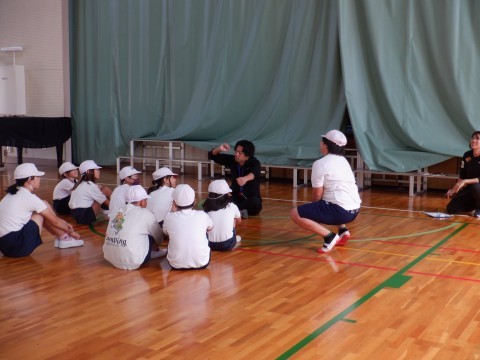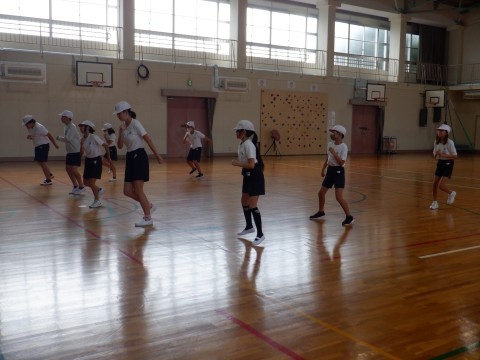 団体演技で披露するダンスについて話し合いました。「動きやかけ声を加えた方がかっこいい」「付け加えたい」「こんな動きはどうか」と意見を出し合い,追加することになりました。下学年のお手本になるため,みんな真剣に動きを確認していました。