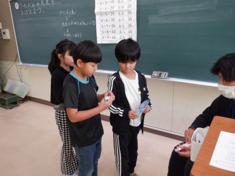 5の段の九九を覚えて,先生に聞いてもらいました。九九カードを使って,おうちでもしっかり覚えましょう。