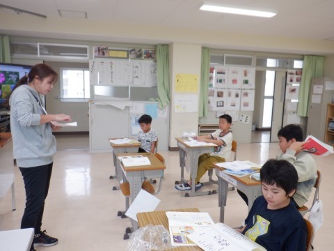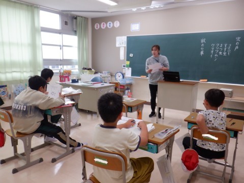 「秋のくらし」を読んで,秋を感じるものについて話し合いました。秋の七草について教えてもらっていました。