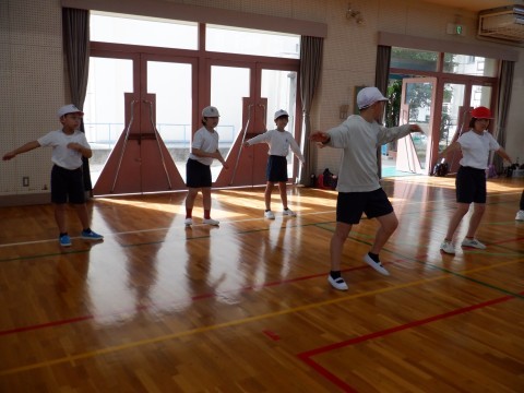 今日はダンスパートの動きを覚えました。高学年の人がお手本になって,動きを一つひとつ教えてくれました。
