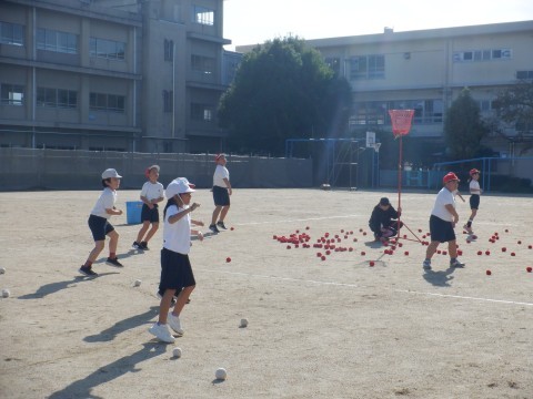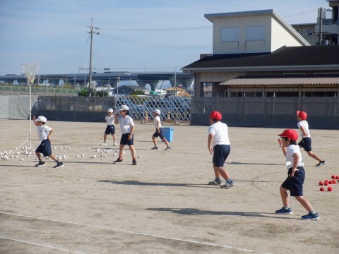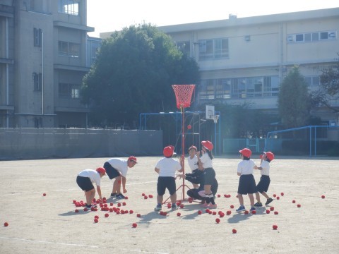 体育参観の団体競技の練習をしました。初めての練習でしたが,しっかり話をよく聞いて,行動できていました。