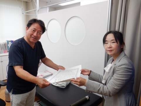 本校学校医としてお世話になっている,杉山クリニックの杉山和義先生へ感謝状を贈呈しました。杉山先生には20年という長きに渡って,子どもたちへの健康診断を行い,感染症流行時には対応をご助言いただくなど,子どもたちの健康を守るため,ご尽力いただいております。