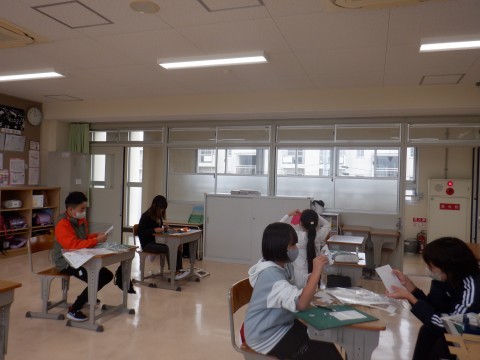 「わくわくランプ」の製作のため,厚紙に描いたデザインを切り抜いています。セロファンを貼って,中から光を照らすとどんなふうに見えるのか意識しながら活動していました。