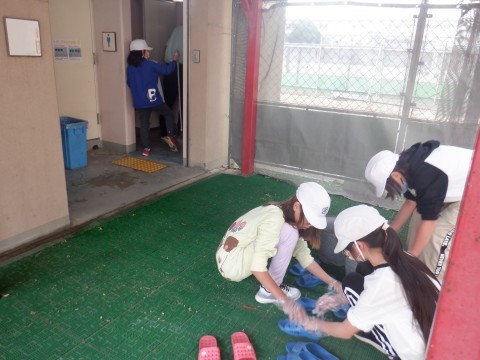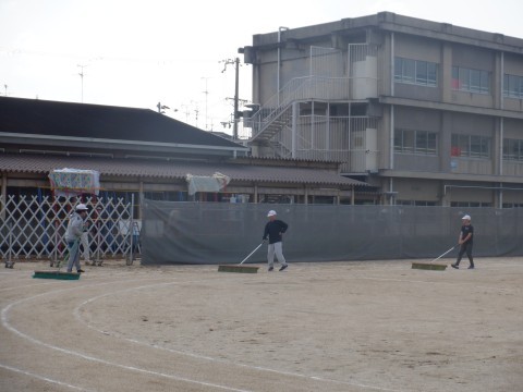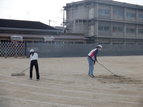 明日の体育参観に向けて,みんなで準備をしました。5・6年生は運動場のコースをひいたり,トイレの掃除をしたりしました。
