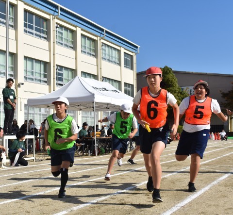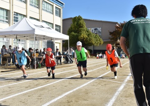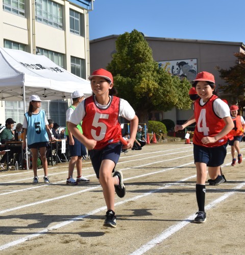リレーでは,運動場1周を走って,次の人にバトンをつなぎました。友だちを応援する声もよく聞こえていました。