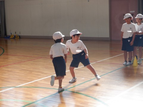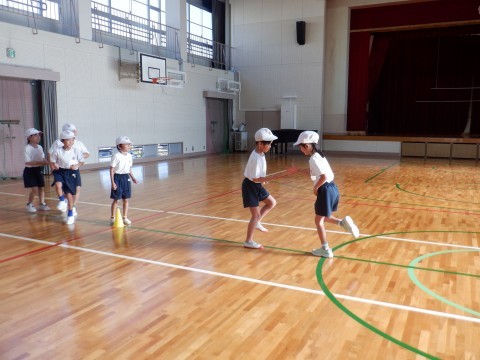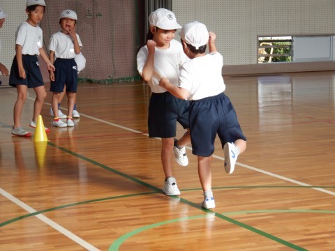 ドン・ジャンケンをしました。線の上を,ケンケンをして進みました。