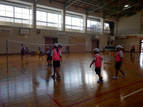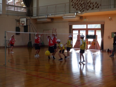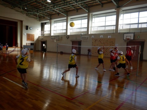 バウンドキャッチバレーをしました。久しぶりでしたが,「声を出して,名前を言っていこう」と以前の様子を思い出して,作戦を考えていました。
