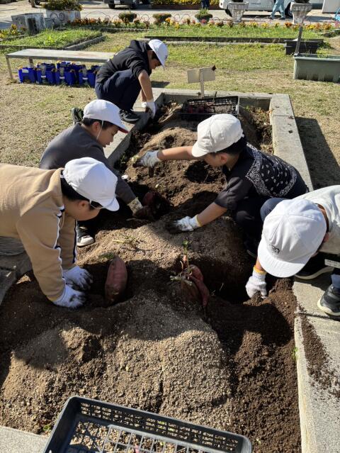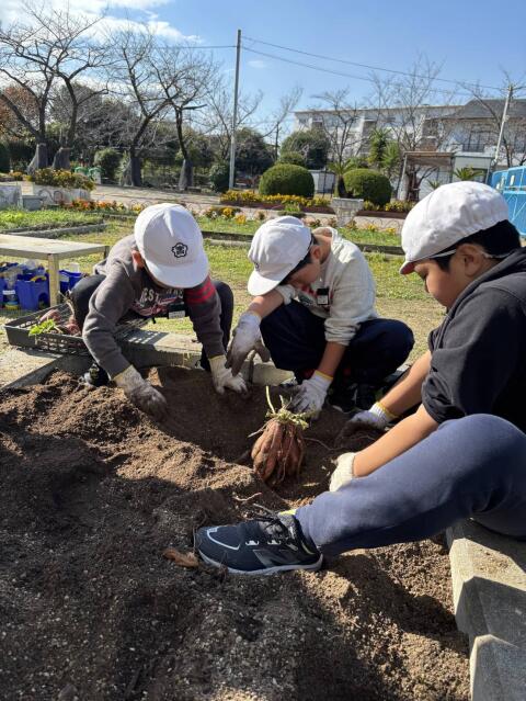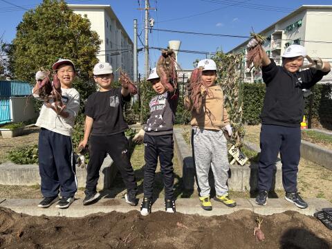 芋掘りをしました。大きな大きなお芋がたくさんとれました。「天ぷらにしてもらおう!」と楽しみにしていました。
