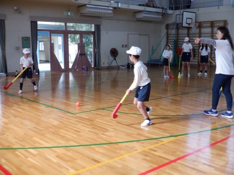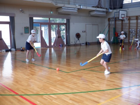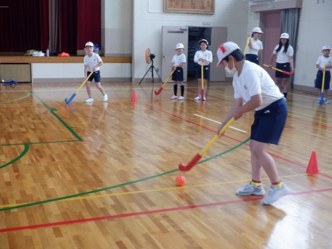 ペアになって,パスをし合い,シュートの練習をしました。なかなか難しかったですね。