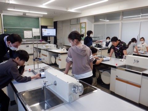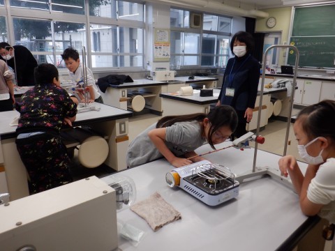 金属の温まり方を調べました。友だちと協力して,実験の準備をしていました。