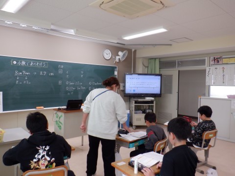 8㎝7mm=8.7cmというように,長さを小数で表す練習をしました。