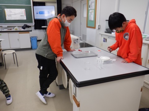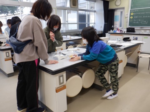 ものを溶かすと,水溶液の重さはどうなるのか,実験しました。水や溶かすものの重さを丁寧に測っていました。