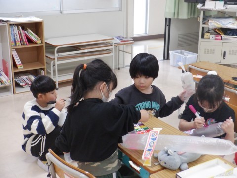 傘袋をふくらませてとばすおもちゃを作りました。