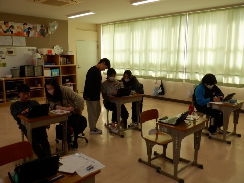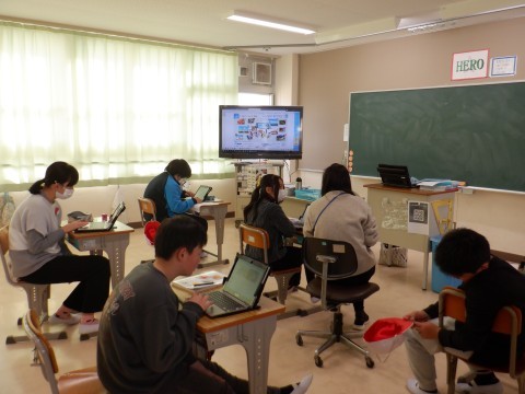 外国を紹介するスライドを作りました。完成が近づいてきたので,友だちと見合いっこしながら,活動していました。