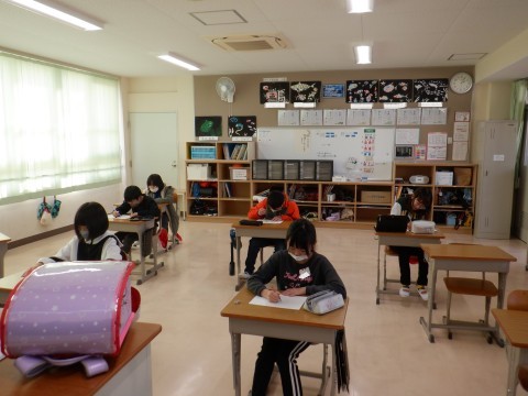身の周りの学用品をテーマに,視写しました。筆箱やランドセルなど,じっとよく見て描いていました。