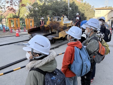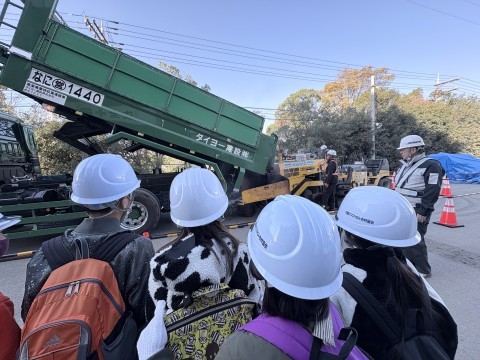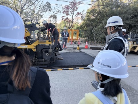 大きな機械で混ぜられた合剤を使用して、実際に施工しているところを見学させていただきました。